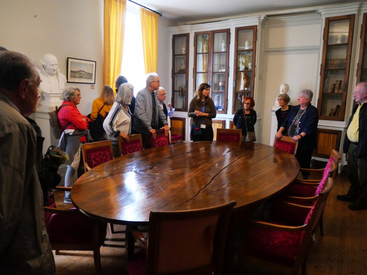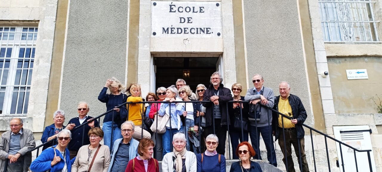 Puis nous avons visité l’ancienne école de Médecine navale, créée en 1722,transférée en 1788 dans un pavillon de l’hôpital maritime, elle fut la première au monde, avec une bibliothèque médicale et cartographique impressionnante, dont des incunables d’avant Gutenberg, et des collections d’instruments chirurgicaux et de pièces anatomiques rares. Photo souvenir sur le perron de l’école de Médecine navale.
