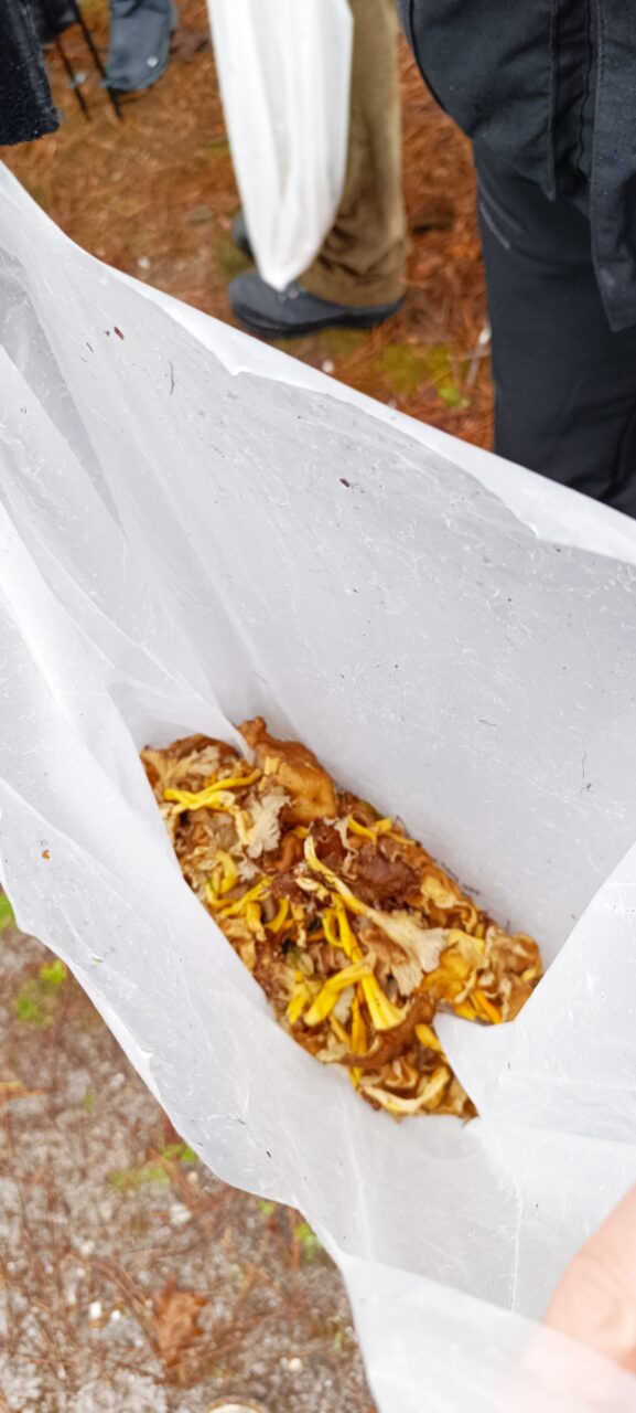 Après avoir visité l’église de Landiras sous la protection de Saint Martin, église bâtie aux XII et XIII° siècles, avec un clocher-porche datant du XVIII° siècle, notre ami agenais nous a conduit dans les bois de pins des environs à la recherche de chanterelles, qui se sont invitées en grand nombre pour le bonheur de tous les participants, et ce malgré une petite pluie fine tenace qui a cependant cessé au moment de la pause-en-cas, pour retourner aux voitures avec l’arrivée du soleil. Occasion pour les gourmets de préparer le soir une belle omelette aux chanterelles ! A vos fourchettes !