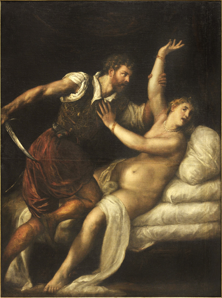 Tarquin et Lucrèce par Le Titien (1570), représentant le viol de Lucrèce par Tarquin (Lucrèce se suicidera après),