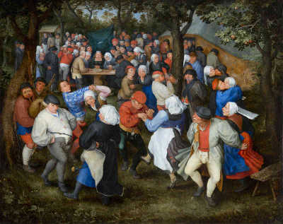 Quelques exemples sont illustrés ici : La danse des noces de Jean Brueghel l’Ancien, vers 1600, la Sainte famille avec Sainte Dorothée de Véronèse (1560-1570), tableau qui était à Versailles sous Louis XIV,