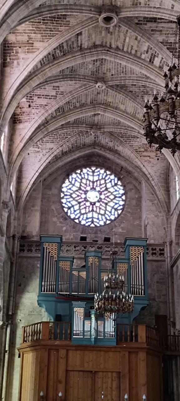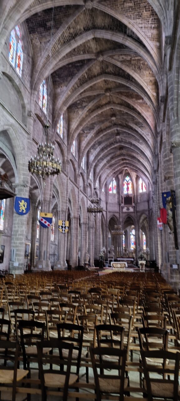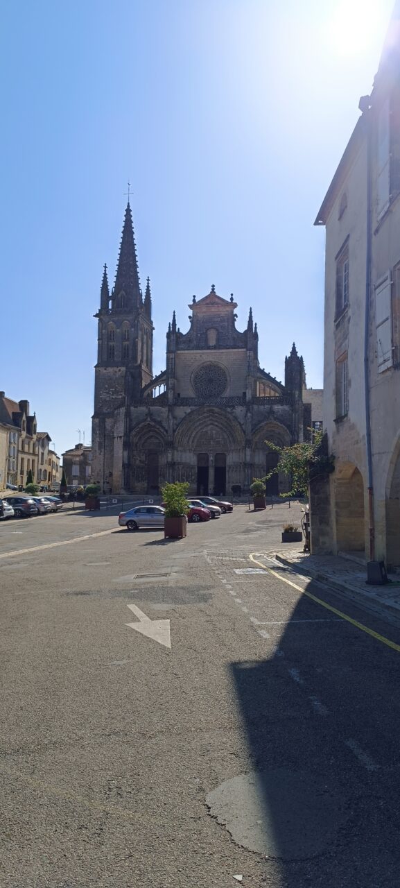 Après s’être garés près de la cathédrale Saint- Jean-Baptiste, nous nous sommes regroupés sur la place de la cathédrale, souvenir de l’évêché qui a duré jusqu’à la Révolution française. Bazas, aujourd’hui 4800 habitants, a longtemps été une place forte du Sud-Ouest avec ses remparts. Cité existant à l’époque de la Gaule Romaine, située sur un plateau rocheux, elle a échappé à la destruction par les Wisigoths et devient un siège épiscopal vers 506. Une première cathédrale est bâtie au VI° siècle.