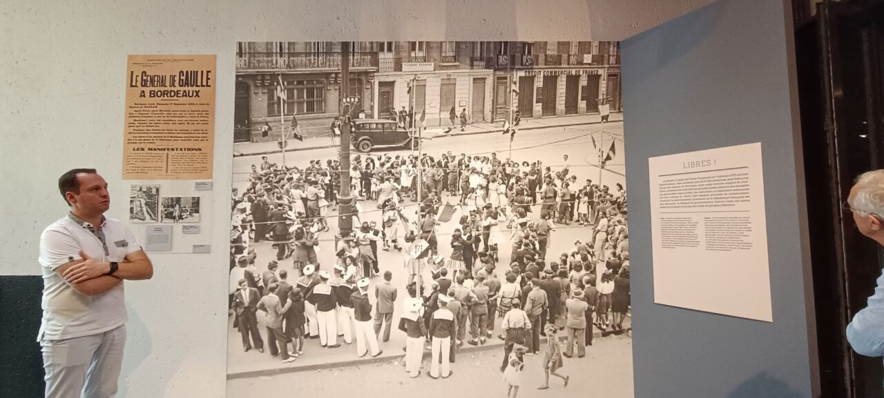 Bonjour à toutes et à tous, notre amie Marie-France Vaillant nous a conviés le 19 septembre 2025 au musée d’Aquitaine cours Pasteur à Bordeaux pour visiter avec un guide passionné l’exposition sur la période 1944-1954 à Bordeaux, de la fin de l’occupation Allemande, suivie par la Libération de la ville le 27 août 1944, la fin de la 2° guerre mondiale avec des poches de résistance (dont La Rochelle) le 8 mai 1945, les festivités de la liberté retrouvée, mais aussi les procès qui ont suivi, collaborateurs, nazis. Cliquer sur chaque photo.